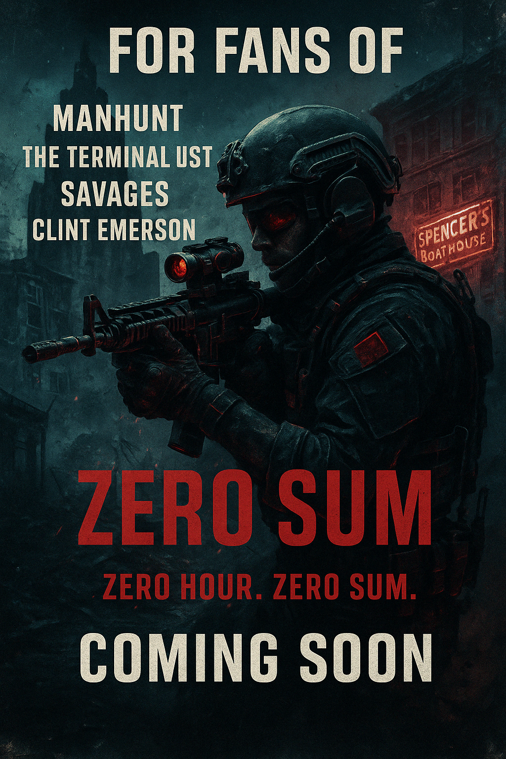 I have had more memorable moments with this book than I recall in one conversation, ha! From verifying parts of my work with contacts within the law enforcement and defense communities to having “aha!” moments where a really cool sequence would come to mind that kicks the story into higher gear – I could talk all day! It was a blast creating Zero Sum.